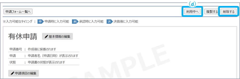 申請フォームを「利用中」に戻すことができます。
