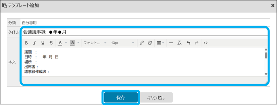 事業者共用 ・・・担当職員と顧客が共通で利用できるテンプレート