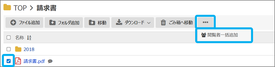 ⑤「…」をクリックし、「閲覧者一括追加」をクリック