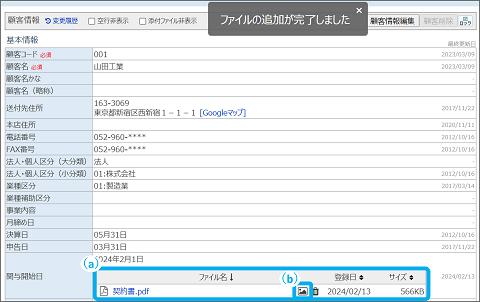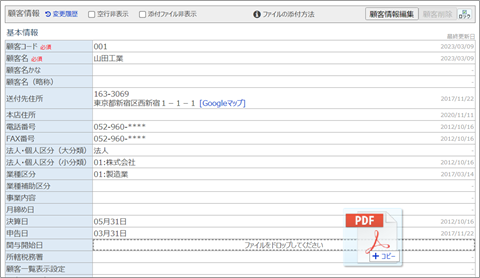 顧客情報の項目にファイルを追加・削除できます。