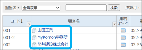 ②顧客名をクリック