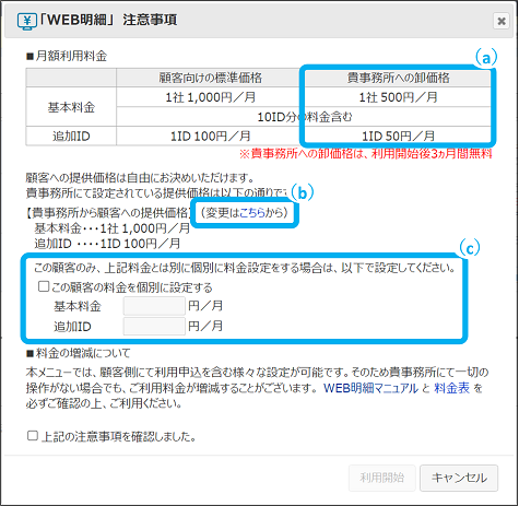 「(c)この顧客の料金を個別に設定する」で、提供価格を変更できます。