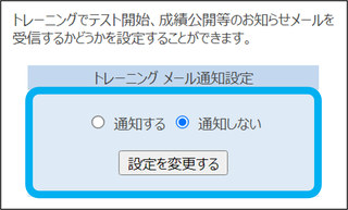 また、テスト開始、成績表公開等のお知らせメールの受信設定もできます。