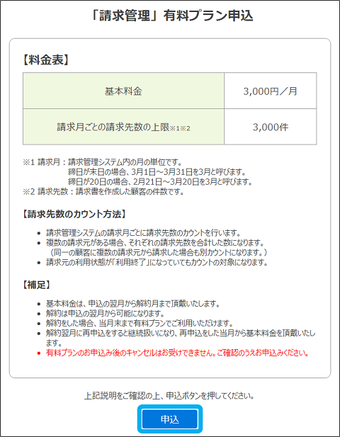 ②「申込」をクリックし、問題なければ「OK」をクリック