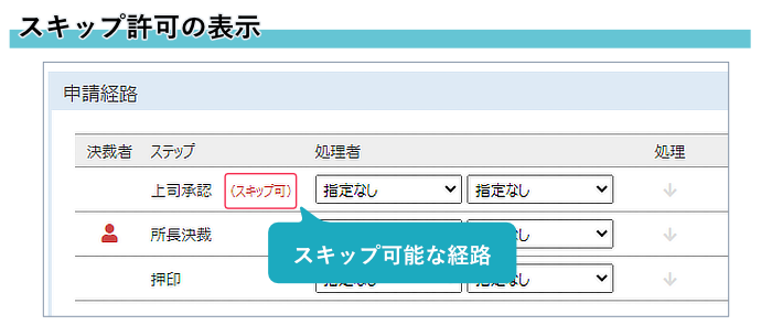 申請経路で「スキップを認める」に設定しているステップが一目でわかるようになりました。