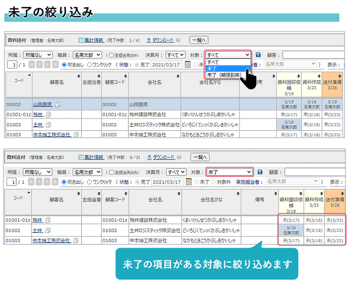 1)未了の項目がある顧客を絞り込めるようになりました。