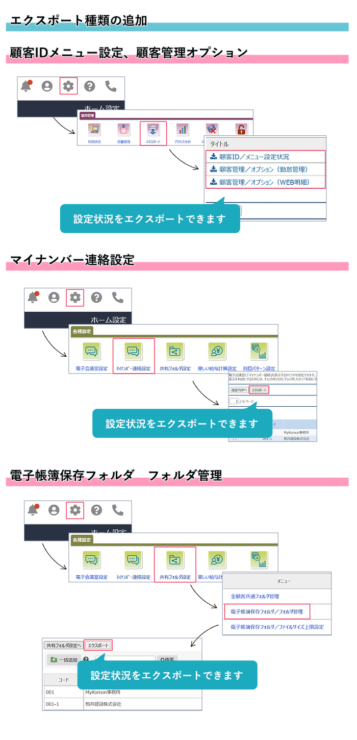「電子会議室」「共有フォルダ/電子帳簿保存フォルダ以外」「共有フォルダ/電子帳簿保存フォルダのみ」の3種類に分かれました。