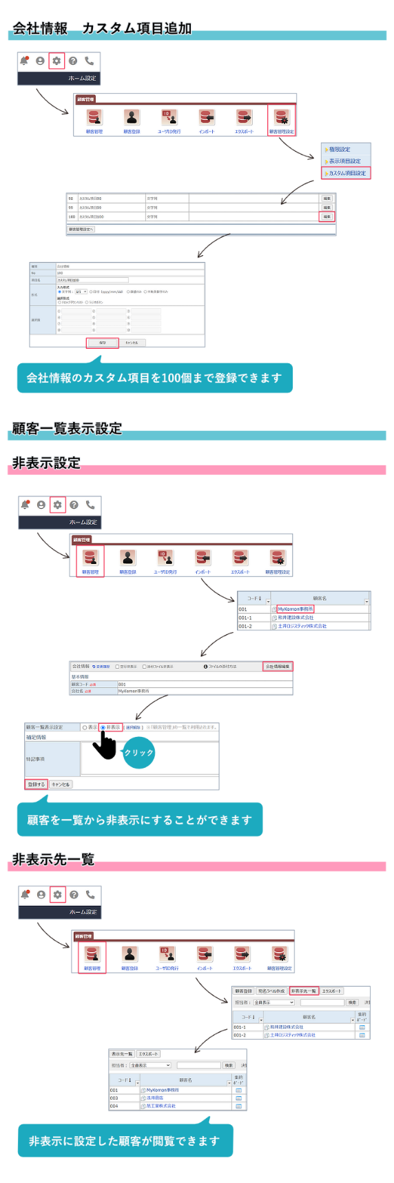 2)顧客一覧表示設定ができるようになりました。