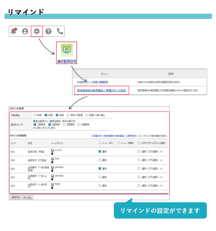 2)受講リマインド機能を搭載いたしました。