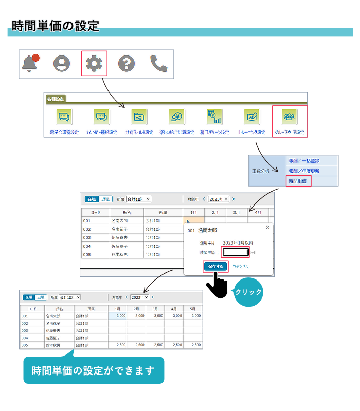 1)職員の時間単価を、期間ごとに設定できるようになりました。