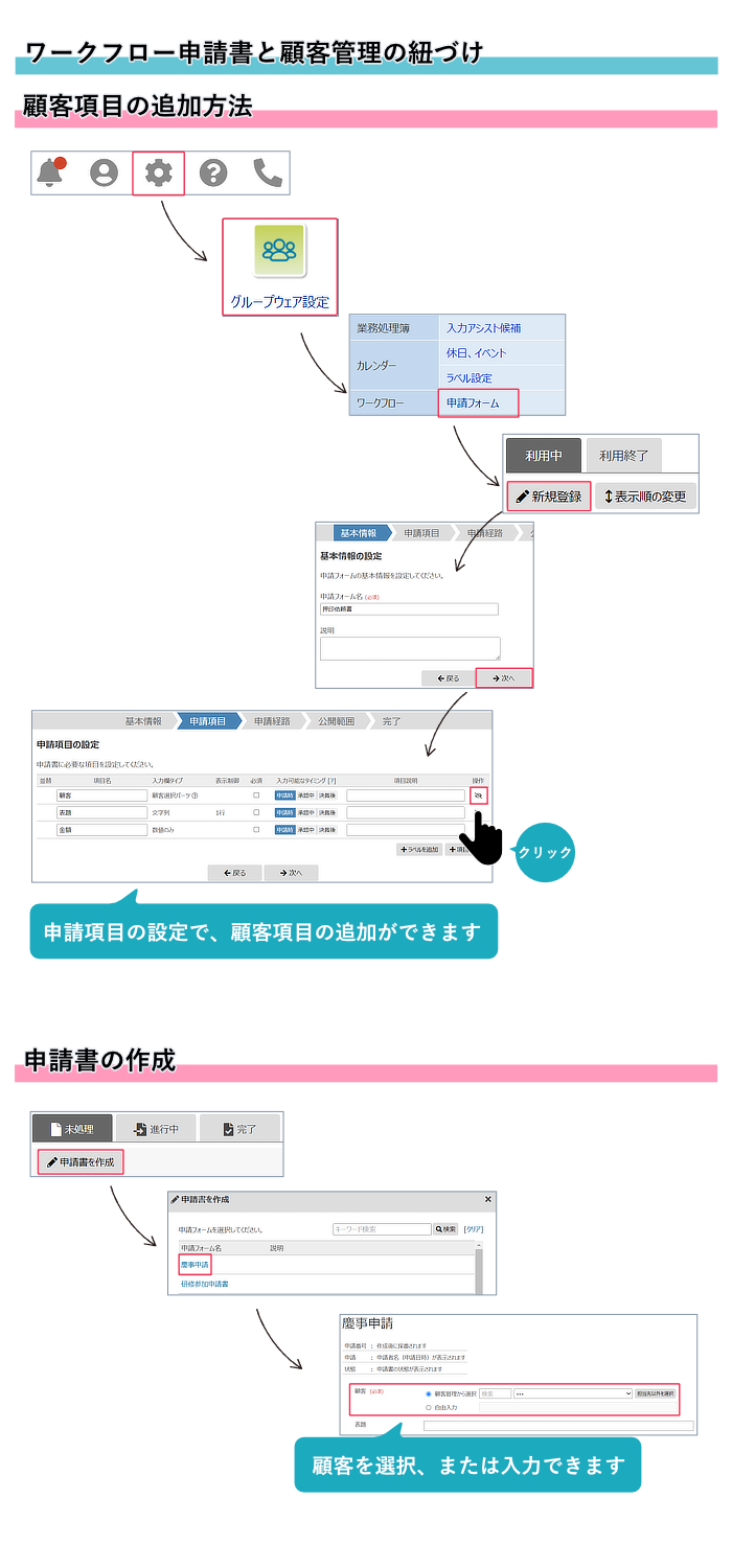 2)完了した申請書を申請フォームや顧客で絞り込んで検索できるようになりました。