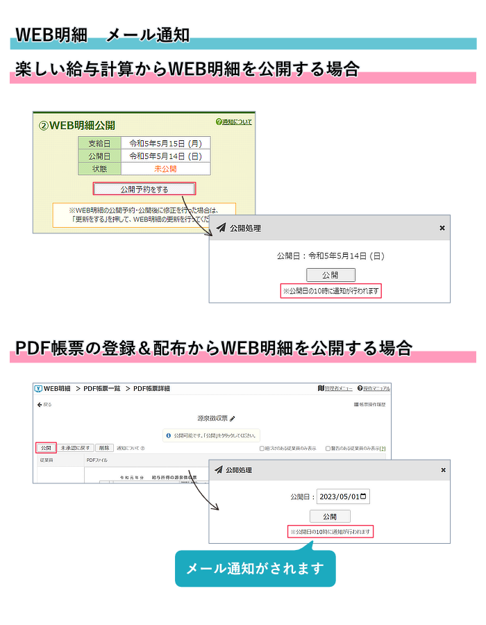 1)WEB明細を公開した際に、メール及びプッシュ通知を受けることができるようになりました。