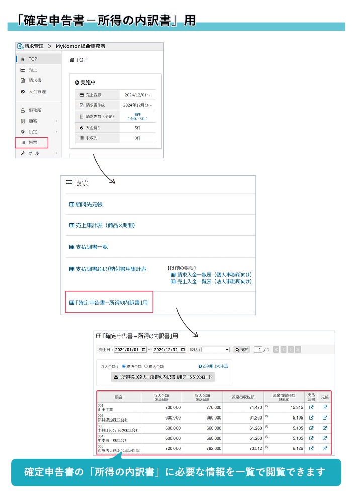 ※当帳票は、源泉徴収対象の売上のみを集計しています。